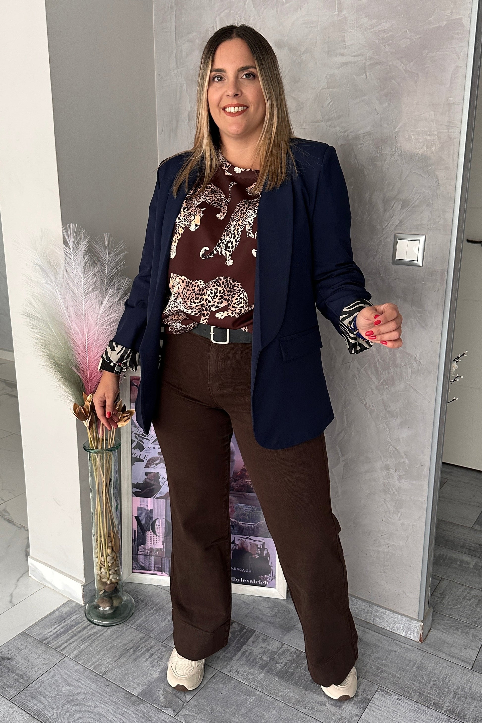 Un blazer elegante y versátil con un toque atrevido que lo hace único. Su exterior en color liso contrasta con el forro interior de estampado animal print, que también se deja ver en las mangas al doblarlas, aportando un extra de estilo y personalidad.