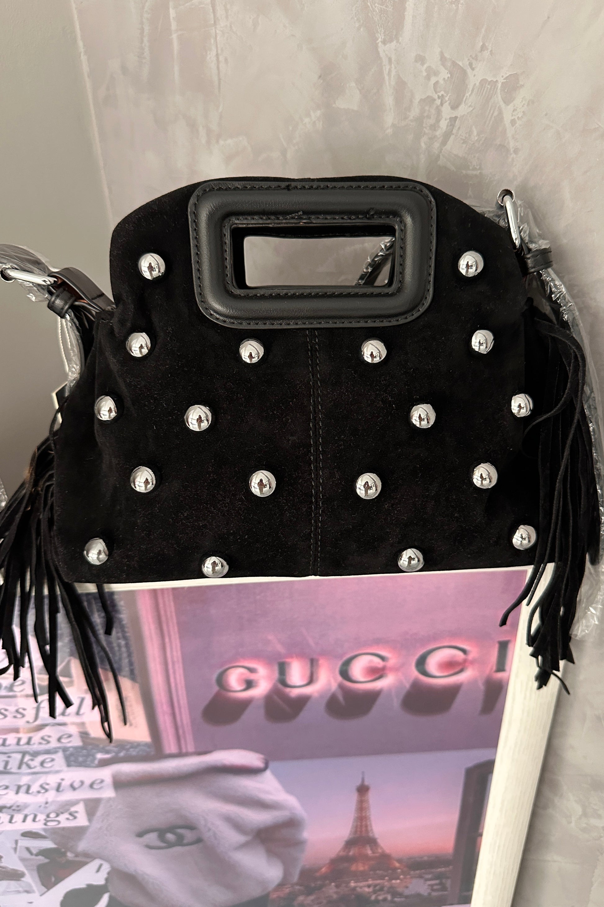 El Bolso Tachuelas Flecos es el complemento perfecto para darle un toque cañero y actual a cualquier look. Diseñado en efecto antelina, cuenta con tachuelas metálicas decorativas y detalle de flecos laterales que marcan estilo. Incluye asa regulable para llevarlo al hombro o cruzado y un cierre superior con detalle rectangular rígido que lo hace aún más especial.
