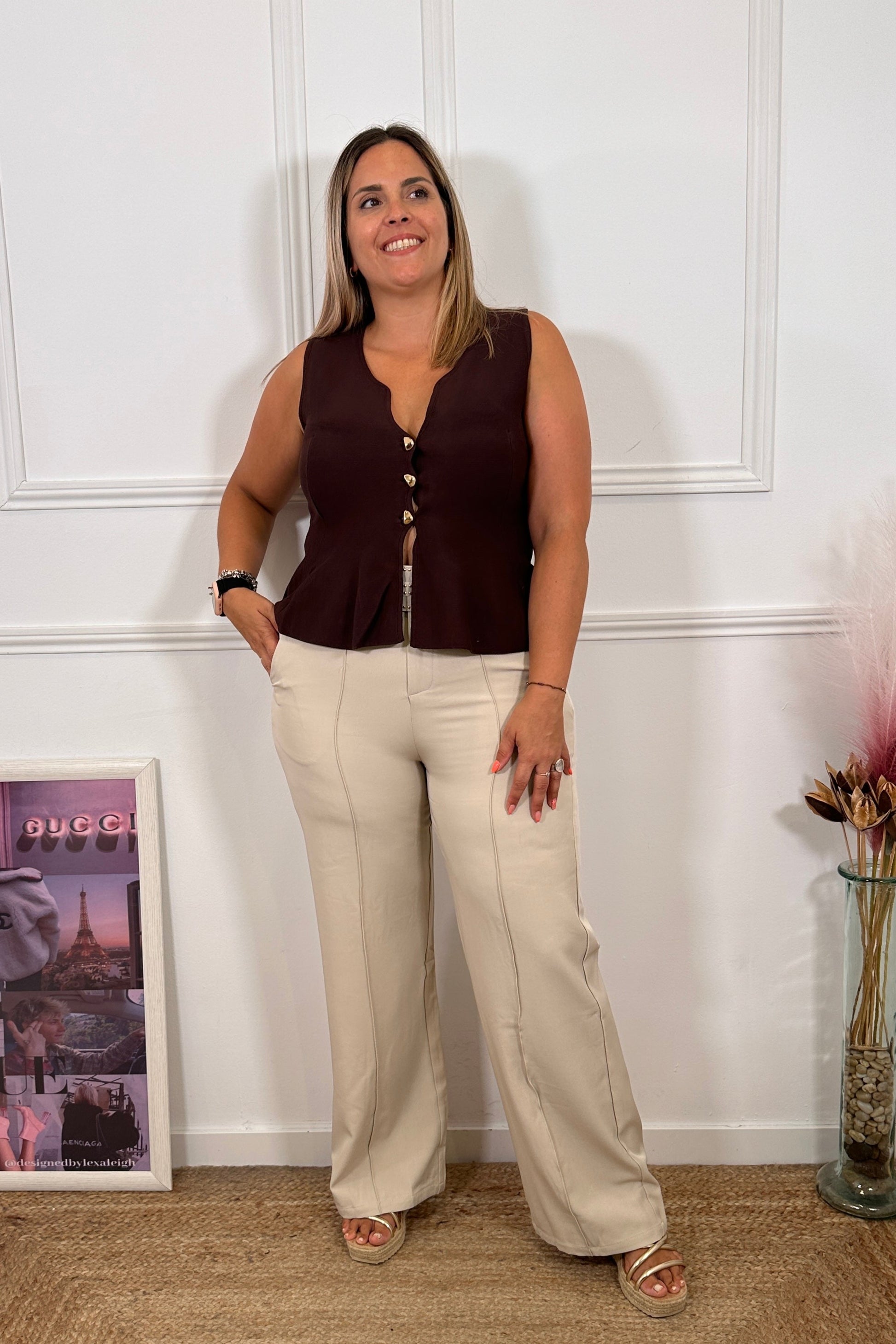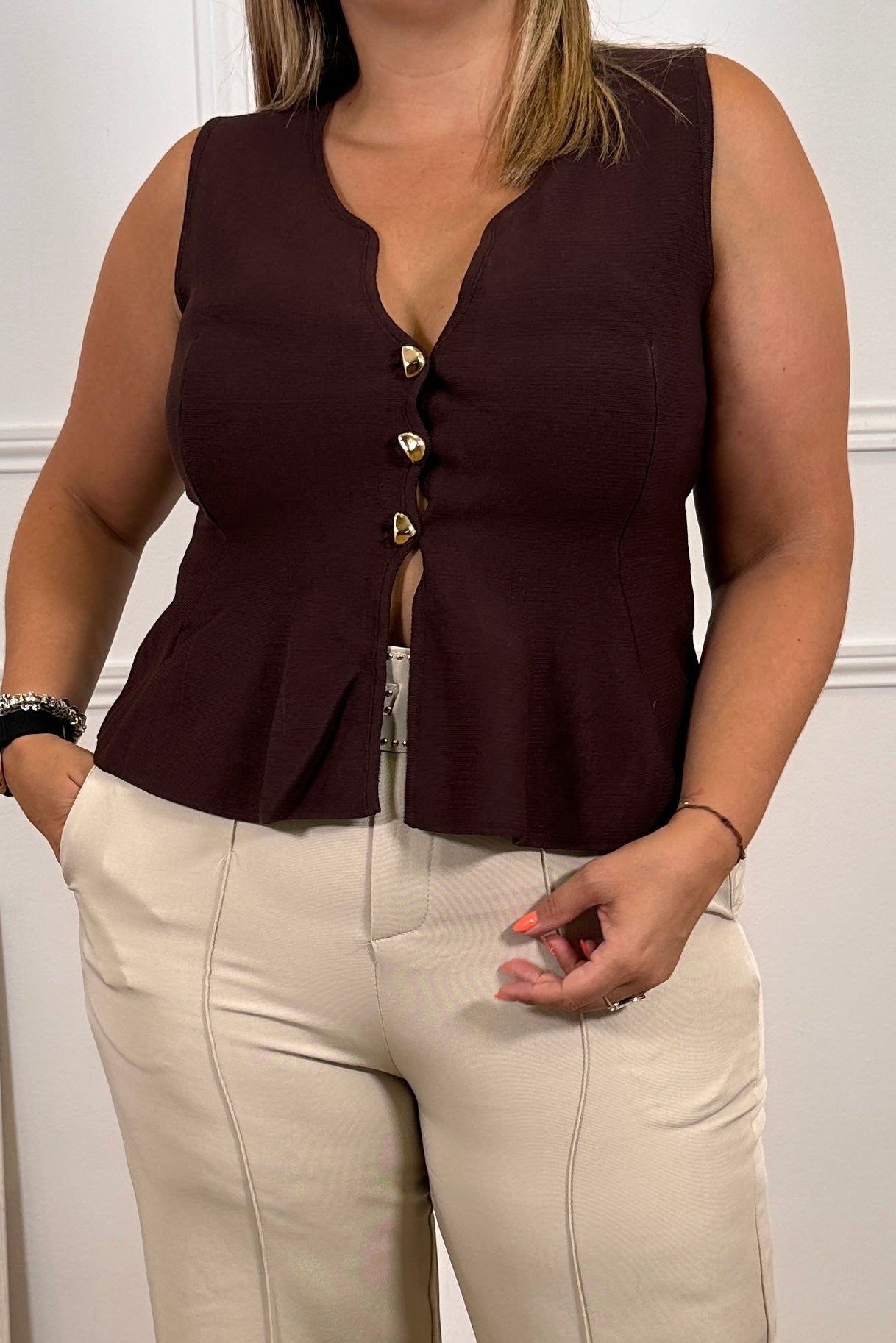 Un toque chic y sofisticado para tus looks 💫. Chaleco de corte entallado con botones dorados en forma de corazón ❤️ que le dan un aire romántico y único. Disponible en negro, marrón, burdeos y crudo, perfecto para combinar con jeans, pantalones de vestir o incluso faldas.