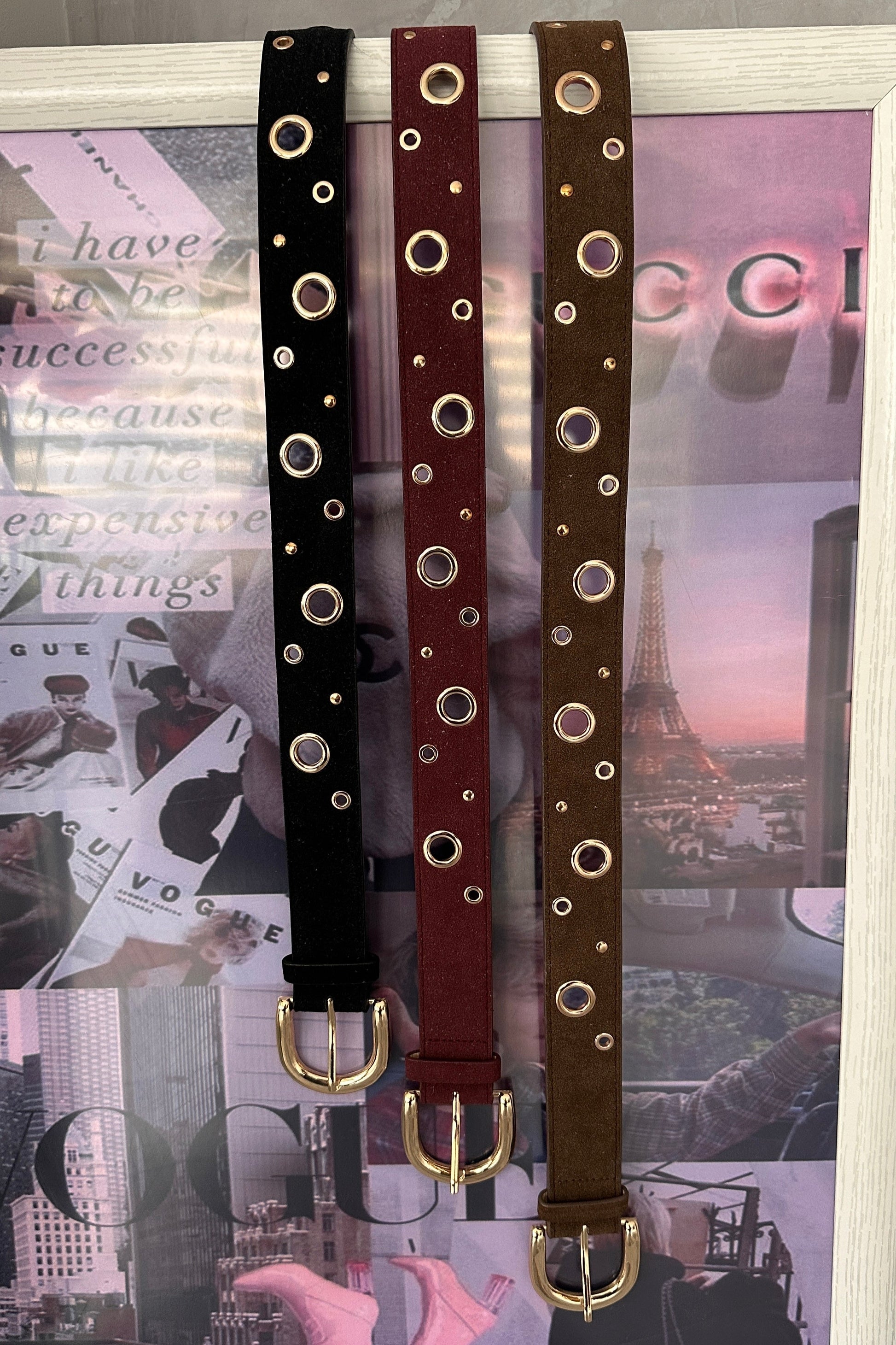 Dale un toque diferente a tus looks con el Cinturón Dakota, confeccionado en antelina suave y adornado con tachuelas metálicas en forma de aros que lo hacen único. Su diseño versátil lo convierte en el complemento perfecto para vaqueros, vestidos o faldas. Disponible en más colores, para que encuentres el que mejor encaje con tu estilo.