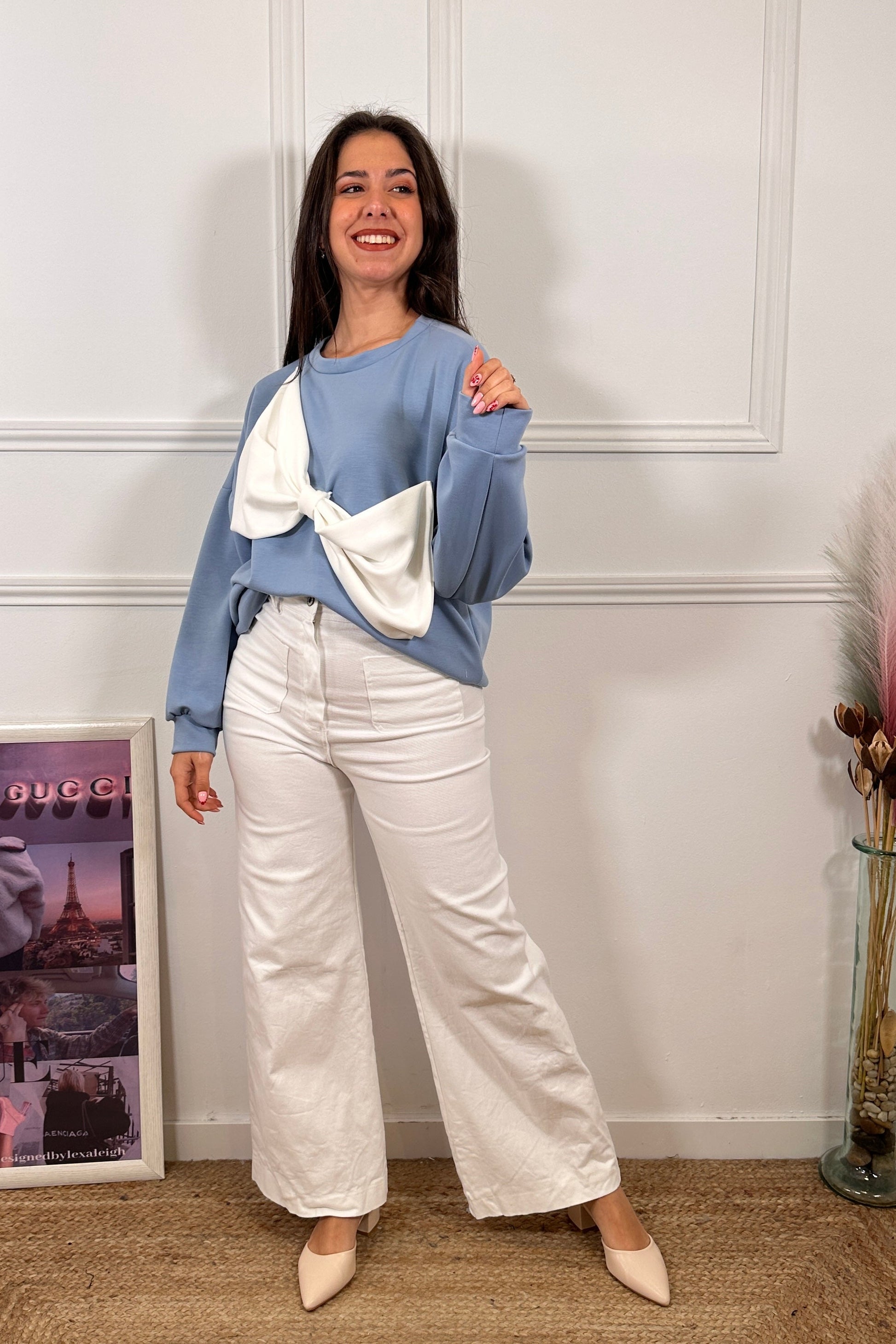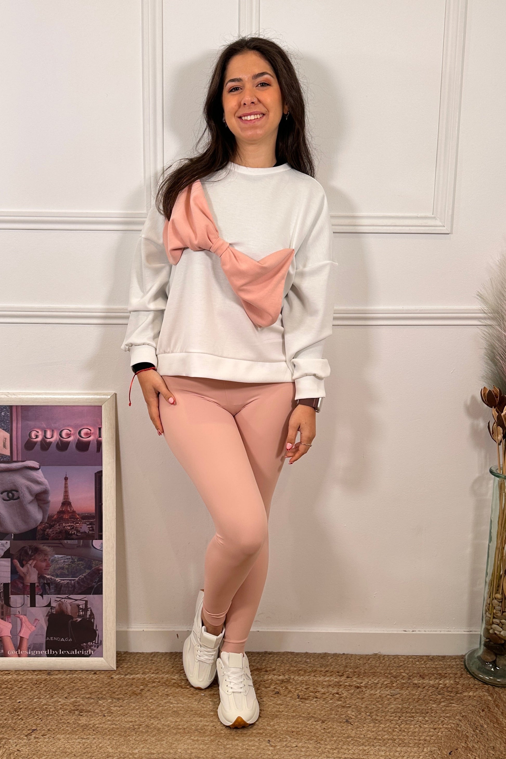 De tacto súper suave y con un lazo frontal en color contrastado. 💫 Comodidad y estilo en una sola prenda, perfecta para tus looks más casuales. ¡Te va a encantar! 💕